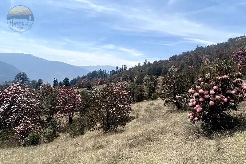 A leisurely wake-up, have breakfast and continue the trek. From Peekye, the trail traverses Peekye Hill to the east with grand views of the north-western Himalayas and deep southern values and horizons. As the trail starts descent to Samsyingma, one of the longest mani-walls (praying wall) of the region, the easter horizon opens with excellent views towards the west and east of Nepal. After Samsyingma, cross a beautiful stretch of forest composed of rhododendrons, Himalayan pine trees and high cliffs. The mountain views toward the east and beautiful horizon are endless, and we arrive at Lhamochhe Stupa, an open area with several Yak herders’ Shades, a giant stupa and a mani-wall surrounding the stupa with two teahouses. Stop briefly at Lhamoche Stupa and enjoy the Himalayan landscape with tea/coffee.