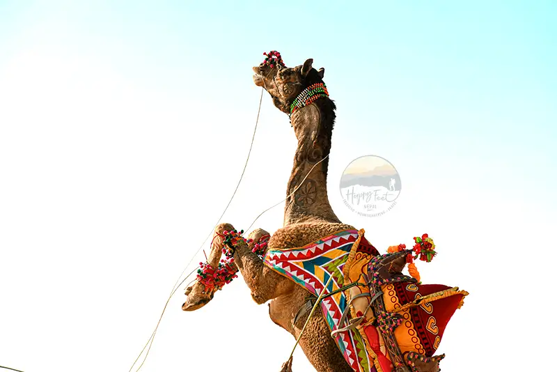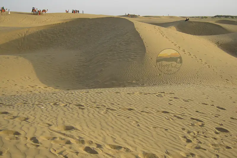 Breakfast at the hotel. Later, visit the city. The Fort of Jaisalmer, a sentinel to the bleak desert scape, perches 80 metres high on the Trikuta hill, built by the Rajput ruler Rawal Jaisal in 1156 and later reinforced by later rulers. The historical Fort of Jaisalmer is entered through a fierce series of massive gates leading to a large courtyard, where a seven-storey palace of the former Maharaja stands in front. The huge courtyard once served to review the troops, hear the petitions, and present extravagant entertainment for the royal guests. A group of beautifully sculpted Jain Temples, dedicated to the Jain apostles Rikhabdev and Sambhavnath, 12th to 15th centuries A.D., are located within the Fort walls, and a part of the palace is open to visitors. It is fascinating to wander through the winding labyrinth of streets within the fort, as nothing has changed here for centuries. It features an enchanting Haveli, or mansion, with intricately carved sandstone buildings built by the wealthy merchants of Jaisalmer. Several of these fine examples are in good condition. The Patwon ki Haveli is noteworthy, being the most elaborate and magnificent amongst the Havelis of Jaisalmer, with exquisitely carved pillars and extensive corridors and chambers. One of these five-storey haveli apartments is adorned with exquisite murals featuring remnants of paintings and mirror work on its interior walls. Salim Singh ki Haveli, built approximately 300 years ago, is situated just below the hill, and a portion of it is still inhabited. When Jaisalmer was in its full glory as a princely state’s capital, Diwan Salim Singh served the land as prime minister. This extraordinary mansion in Yellowstone has a beautifully arched roof with superb brackets carved in the form of peacocks and an elaborate projecting balcony on the top storey. Nathmal ki Haveli is a late 19th-century mansion carved by two brothers, similar and balanced in design. The interior walls are splendid, with miniature paintings. Yellow sandstone elephants guard the building, and even its front door is a work of art.