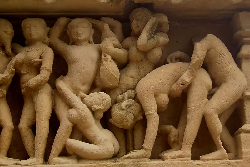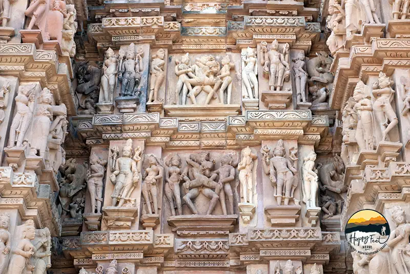 The liberally embellished and exquisitely carved sculptures have made Khajuraho famous; sculptures are a tribute to life itself, embodying everything sublime and spontaneous. There is an unbelievably elaborate and detailed carving of masses of individual figures, including gods and goddesses, mythical beasts, couples in erotic poses, voluptuous women, and friezes. The murals depict the realities of the Chandelas period and celebrate the erotic nature of the natural world. All of these testify to the craftsman’s mastery and the extraordinary breadth of vision of the Chandelas.