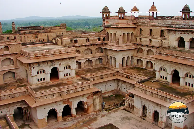 Breakfast at the hotel. Today, visit Ram Raja Temple, built on a square base, which has an almost plain exterior with projecting windows and a line of delicate domes. The Jahangir Mahal is built on a rectangular base, and each corner is surmounted by a dome with graceful balconies, with eight large fluted domes as roofs, marking the central storeys. An ornamental fence connects each dome. All these architectural wonders make Jahangir Mahal the specimen monument of the Mughal period. Jodha, the mother of Jahangir, was also a Rajput; therefore, the Rajput ruler of Orchha built the Jahangir Mahal. A show of sound and light in Jahangir Mahal is spectacular to see. The show offers an overview of the history of Orchha City, including its Jahangir Mahal. The 9th-century Chaturbhuj Temple is an old temple.